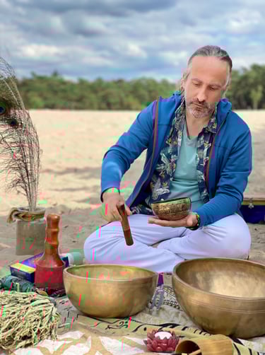 My quest to become the purest version of myself, brought me to various meditation techniques, circling, yoga, self-inquiry and a diversity of courses & trainings: Reiki, Clarity, Tantric, Wheel of Consent, Inner Alchemy, Yoga of the Mind, Embodied Cacao Facilitator & Practitioner, TRE, Men's Work, NLP, massage (Tibetan, Intuitive, Tantric, Relax), breathwork, bodywork (soft touch Gaia method), ceremonies, drum circles, Sound Alchemy and Masterclasses Sound Healing...