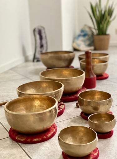 Smaller bowls I sometimes place on the body where I can gently play them for deeper relaxation.