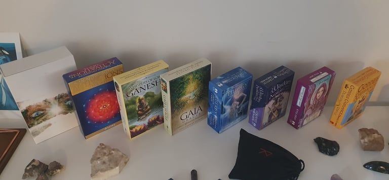 For over 5 years I learned to connect with different decks and tune into their unique qualities. Some give a direction or support in terms of guidance, while others provide a better understanding or insight in the process someone is in.